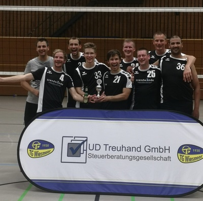 Mit einem 2:1-Endspielsieg (25:13, 23:25, 16:14) über die VSG Holtland/Uplengen verteidigten die Bezirksligamänner der TG Wiesmoor am vergangenen Samstag bei tropischen Verhältnissen in der Wiesmoorer Dreifachhalle erfolgreich ihren Regionspokaltitel, nachdem sie in der Vorrunde ihrem Bezirksligarivalen noch mit 0:2 unterlegen waren. Zur Freude des Regionsvorsitzenden Ingo Kerkau war das Turnier bei fast gleicher Besetzung wie im Vorjahr wesentlich ausgeglichener, weil sich vor allem die jungen Kreisligateams aus Emden und Wiesmoor mit den vielen U20-Spielern der Jahrgänge 2001 - 2004 in ihren Reihen enorm weiter entwickelt hätten. Das ließe auf eine weitere positive Entwicklung im männlichen Nachwuchsbereich hoffen.