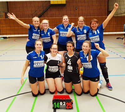 Nach den Vorrundenspielen hatten sich VG Emden I vor MTV Aurich in Gruppe A und FTC Hollen vor BW Borssum III in Gruppe B für die Halbfinalspiele qualifiziert. Hier drehten die jeweiligen Gruppenzweiten den Spieß um: BW Borssum besiegte im Stadtduell VG Emden I 2:0 (25:18, 25:22) und im anderen Halbfinale behielt das neuformierte Team von Landesligaabsteiger MTV Aurich in zwei jeweils in die Verlängerung gehenden dramatischen Sätzen mit 2:0 (29:27, 28:26) die Oberhand gegen den Turnierfavoriten FTC Hollen. Im Endspiel fehlten den Aurichern dann gegen die super aufspielende Turnierüberraschung aus Borssum die Kraft und musste sich dem verdienten Pokalsieger mit 0:2 (20:25,14:25) geschlagen geben. Mit dieser absolut bezirksligareifen Leistung erspielten sich die Emder Vorstädterinnen die Favoritenrolle für die kommende Bezirksklassensaison und den Aufstieg in die Bezirksliga. Auf jeden Fall kosteten sie ihren Überraschungscoup ausgiebig aus, nachdem sie aus der Hand vom Regionsvorsitzenden Ingo Kerkau den Pokal, den brandneuen Wettspielball des Volleyball-Weltverbandes und den Siegersekt erhalten hatten.